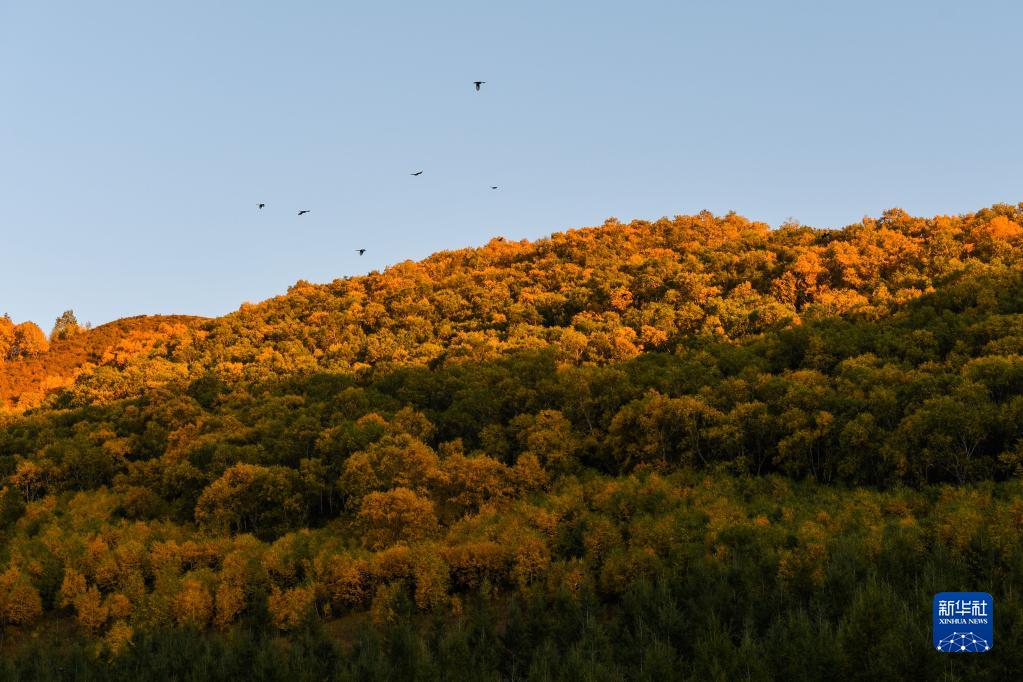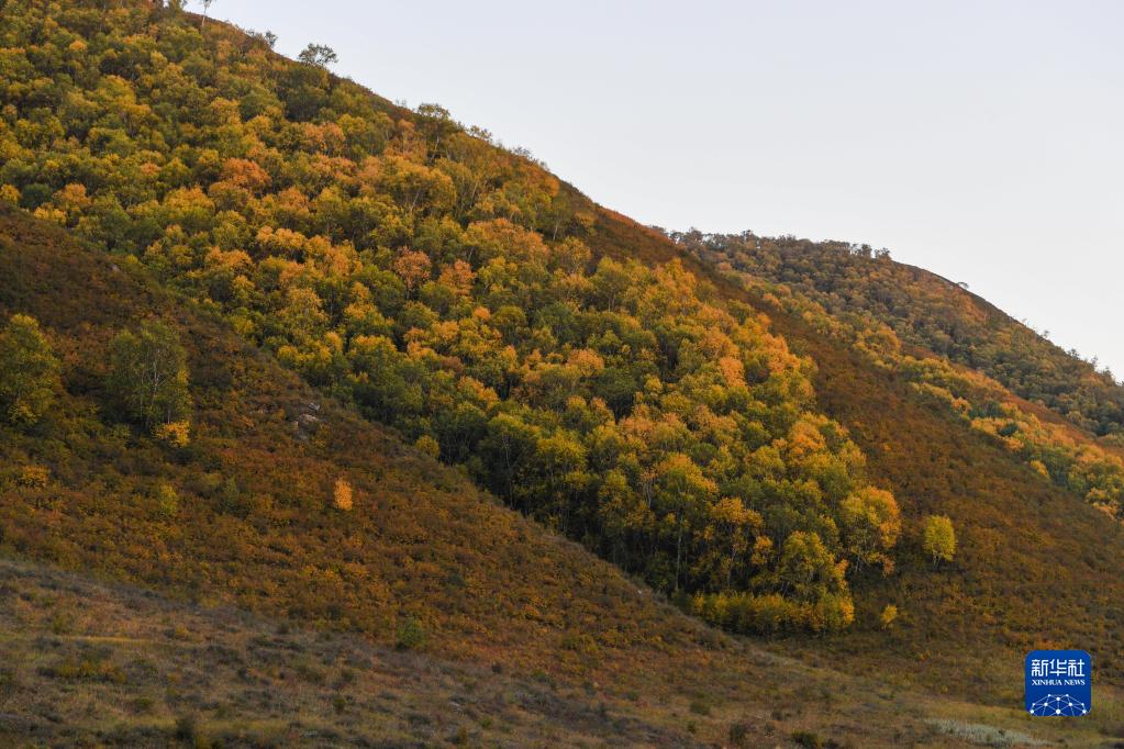 秋日里,內(nèi)蒙古呼和浩特市大青山色彩斑斕,層林盡染,景色宜人?!?/p>
