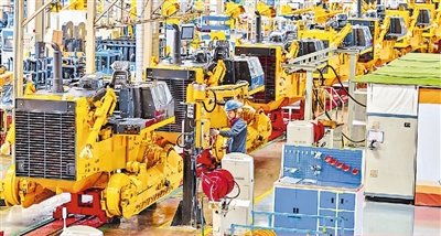 近年來,山東山推工程機械股份有限公司積極響應(yīng)“一帶一路”倡議,主要產(chǎn)品在“一帶一路”沿線均有銷售。圖為在山推總裝車間,工人正在作業(yè)。 |