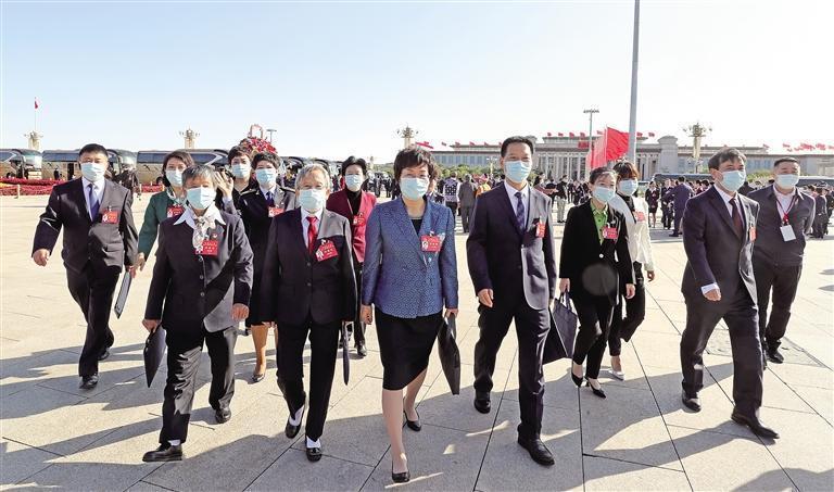 10月16日上午,中國共產黨第二十次全國代表大會在北京隆重開幕。出席黨的二十大的陜西省代表滿懷豪情,步入人民大會堂,參加開幕會。 記者 母家亮攝