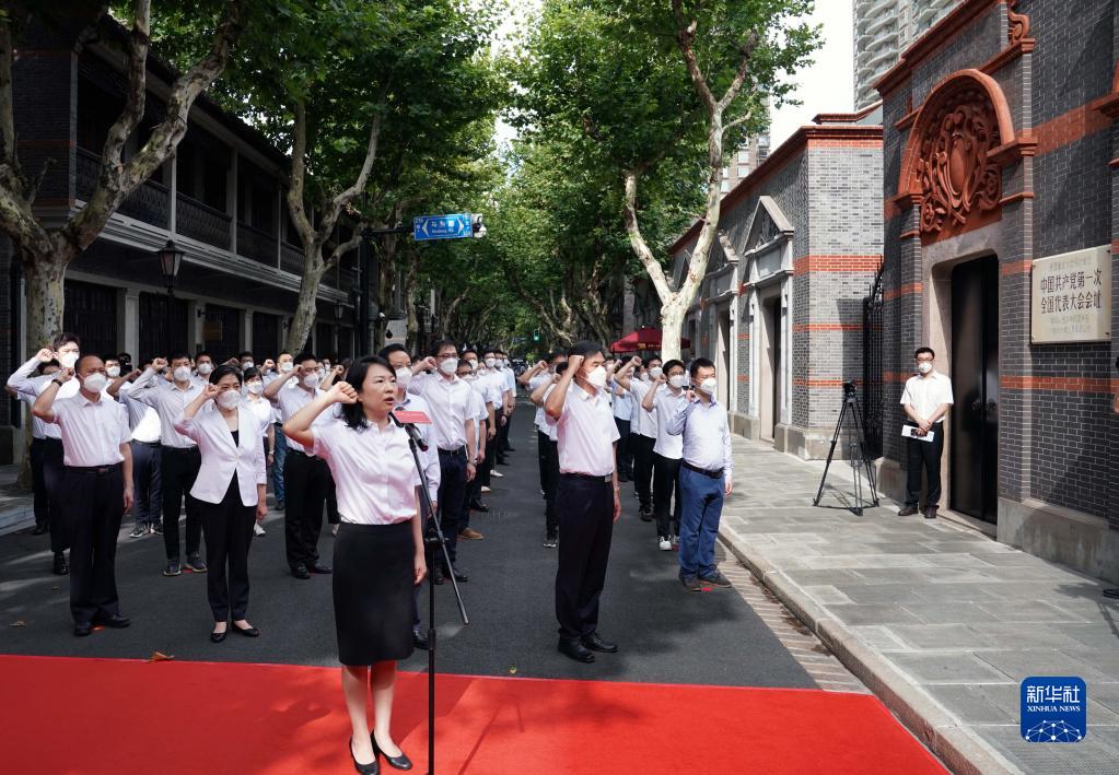 上海市新黨員代表入黨宣誓活動(dòng)在中共一大會(huì)址前舉行(2022年7月1日攝)。新華社記者 劉穎 攝