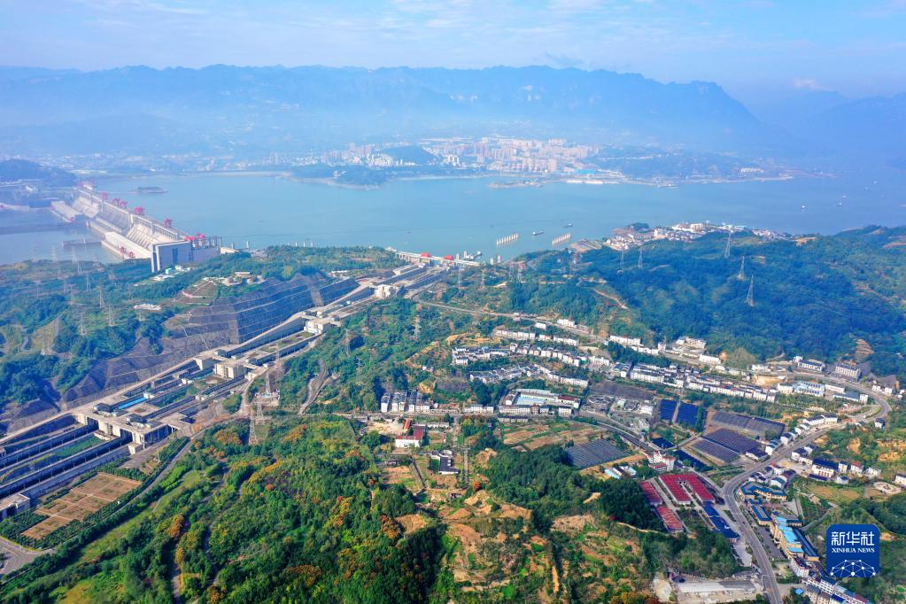 這是位于三峽工程大壩壩頭北岸的湖北省宜昌市夷陵區(qū)太平溪鎮(zhèn)許家沖村(10月16日攝,無人機(jī)照片)。新華社發(fā)(張國榮 攝)