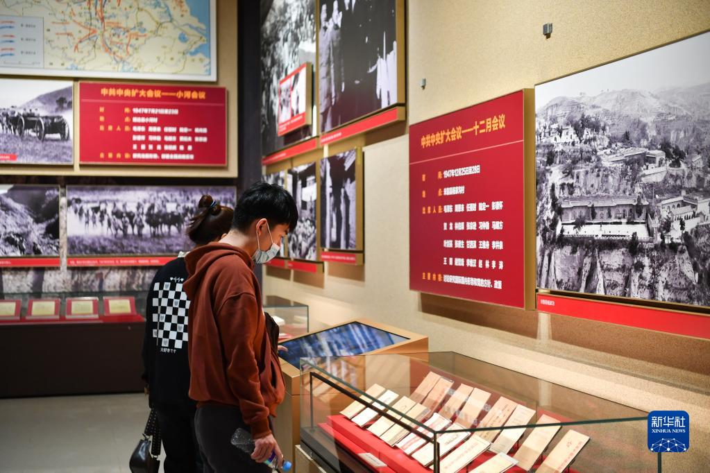 10月16日,在陜西省延安市,人們?cè)谘影哺锩o(jì)念館參觀。新華社記者 張博文 攝