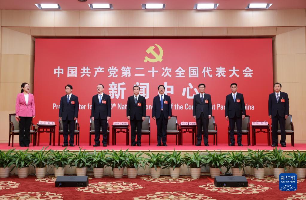 10月18日,中國共產(chǎn)黨第二十次全國代表大會新聞中心舉行集體采訪,請北京、天津、河北、山西、內(nèi)蒙古、遼寧、吉林代表團(tuán)新聞發(fā)言人出席,介紹代表團(tuán)學(xué)習(xí)討論二十大報(bào)告情況,并回答記者提問。新華社記者 陳建力 攝