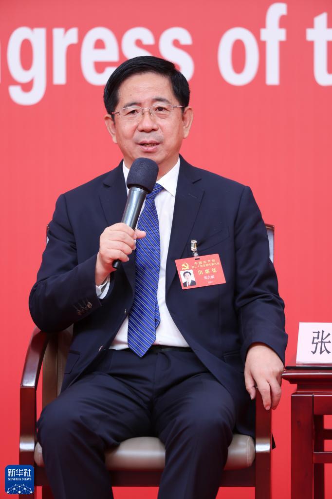 10月18日,中國共產(chǎn)黨第二十次全國代表大會新聞中心舉行集體采訪,請北京、天津、河北、山西、內(nèi)蒙古、遼寧、吉林代表團(tuán)新聞發(fā)言人出席,介紹代表團(tuán)學(xué)習(xí)討論二十大報(bào)告情況,并回答記者提問。這是山西省委常委、常務(wù)副省長張吉福在回答記者提問。新華社記者 陳建力 攝