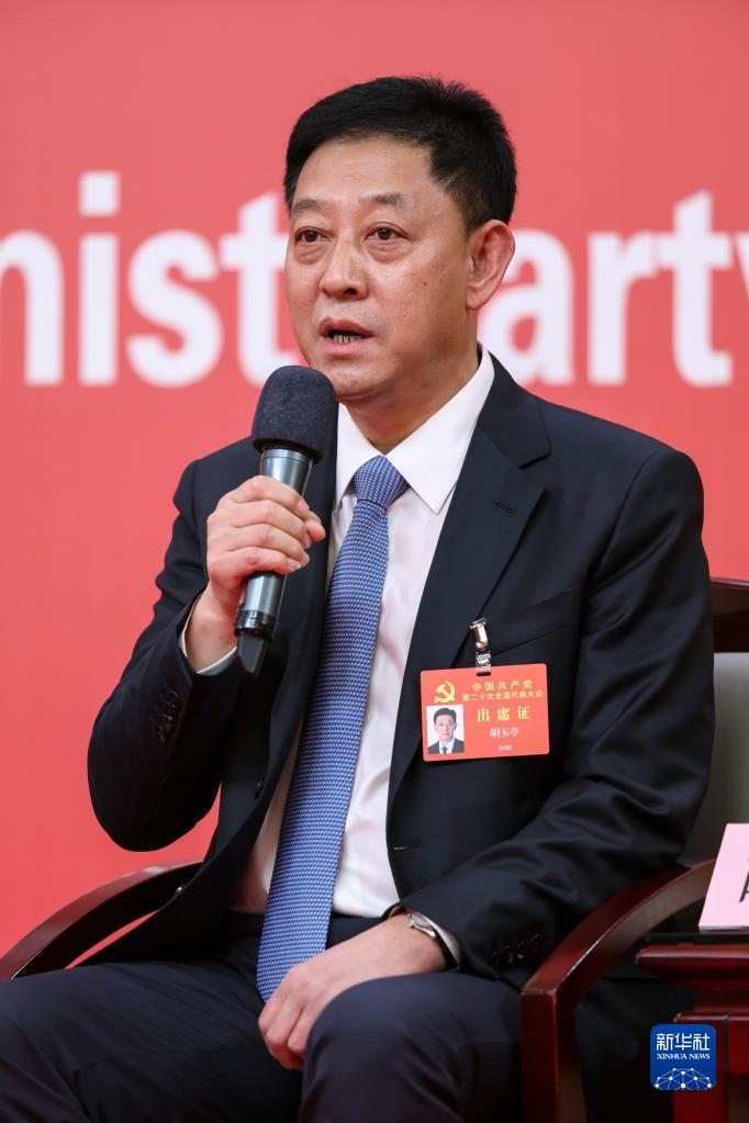 10月18日,中國共產(chǎn)黨第二十次全國代表大會新聞中心舉行集體采訪,請北京、天津、河北、山西、內(nèi)蒙古、遼寧、吉林代表團(tuán)新聞發(fā)言人出席,介紹代表團(tuán)學(xué)習(xí)討論二十大報(bào)告情況,并回答記者提問。這是遼寧省委副書記、大連市委書記胡玉亭在回答記者提問。新華社記者 陳建力 攝