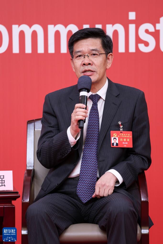 10月18日,中國共產(chǎn)黨第二十次全國代表大會新聞中心舉行集體采訪,請北京、天津、河北、山西、內(nèi)蒙古、遼寧、吉林代表團(tuán)新聞發(fā)言人出席,介紹代表團(tuán)學(xué)習(xí)討論二十大報(bào)告情況,并回答記者提問。這是內(nèi)蒙古自治區(qū)黨委常委、自治區(qū)常務(wù)副主席黃志強(qiáng)在回答記者提問。新華社記者 張玉薇 攝