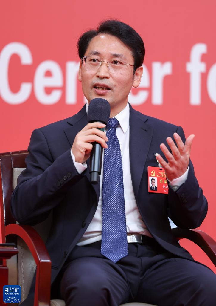 10月18日,中國共產(chǎn)黨第二十次全國代表大會新聞中心舉行集體采訪,請北京、天津、河北、山西、內(nèi)蒙古、遼寧、吉林代表團(tuán)新聞發(fā)言人出席,介紹代表團(tuán)學(xué)習(xí)討論二十大報(bào)告情況,并回答記者提問。這是北京市委常委、秘書長趙磊在回答記者提問。新華社記者 陳建力 攝
