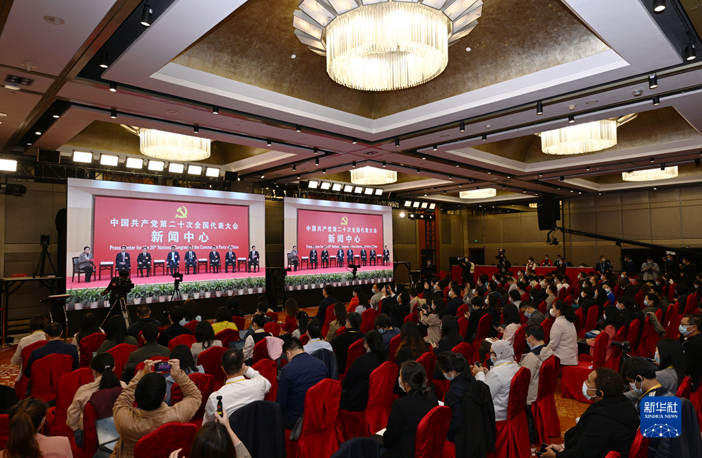 10月19日,中國共產(chǎn)黨第二十次全國代表大會新聞中心舉行集體采訪。山東、河南、湖北、湖南、廣東、廣西、海南代表團(tuán)新聞發(fā)言人出席,介紹代表團(tuán)學(xué)習(xí)討論二十大報告情況,并回答記者提問。新華社記者 陳建力 攝