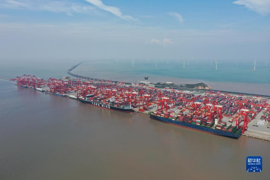 這是2022年9月23日拍攝的上海洋山港集裝箱碼頭(無人機照片)。新華社記者 丁汀 攝