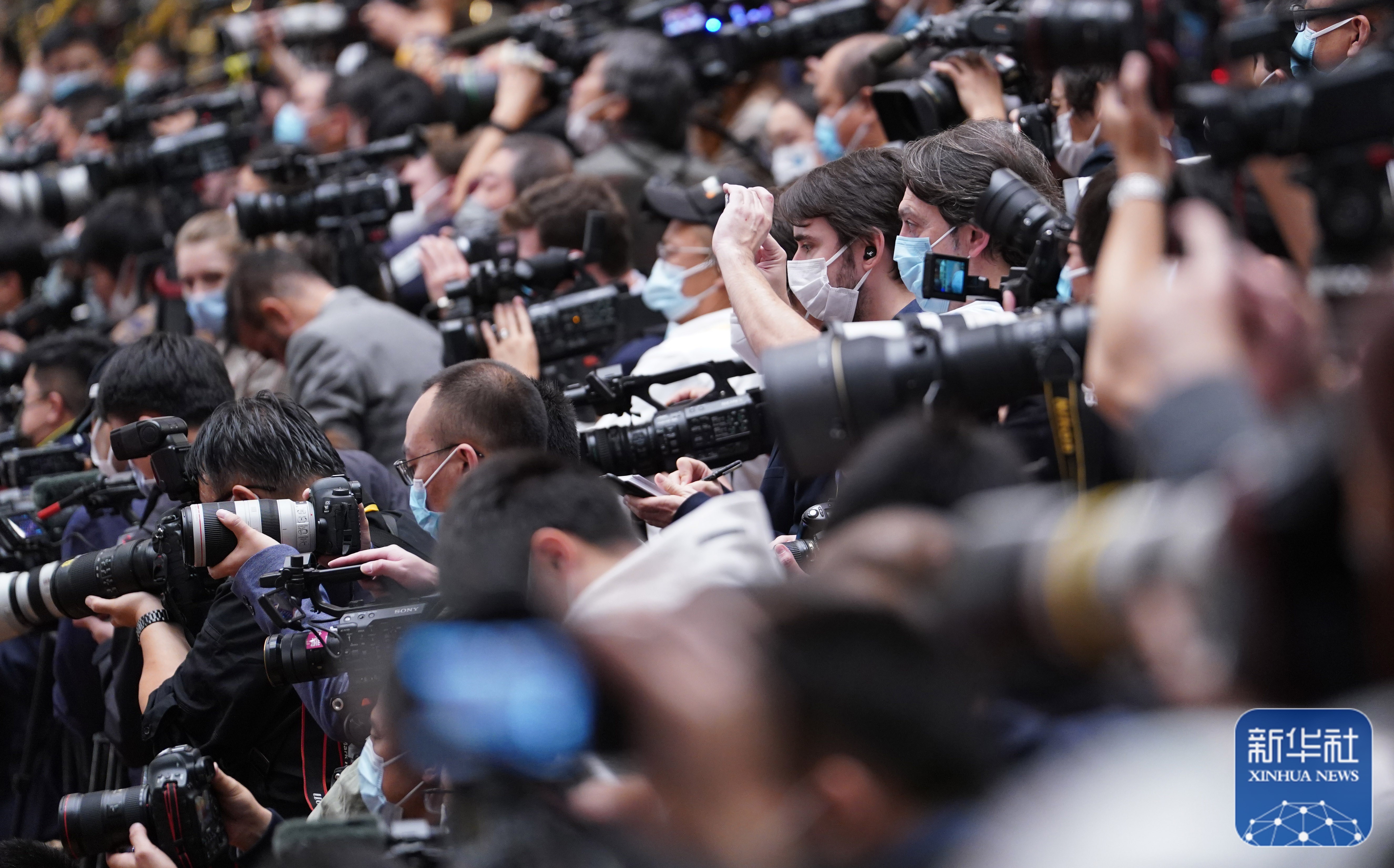 10月22日,中國共產(chǎn)黨第二十次全國代表大會閉幕會在北京人民大會堂舉行。這是記者在采訪拍攝。新華社記者 陳曄華 攝