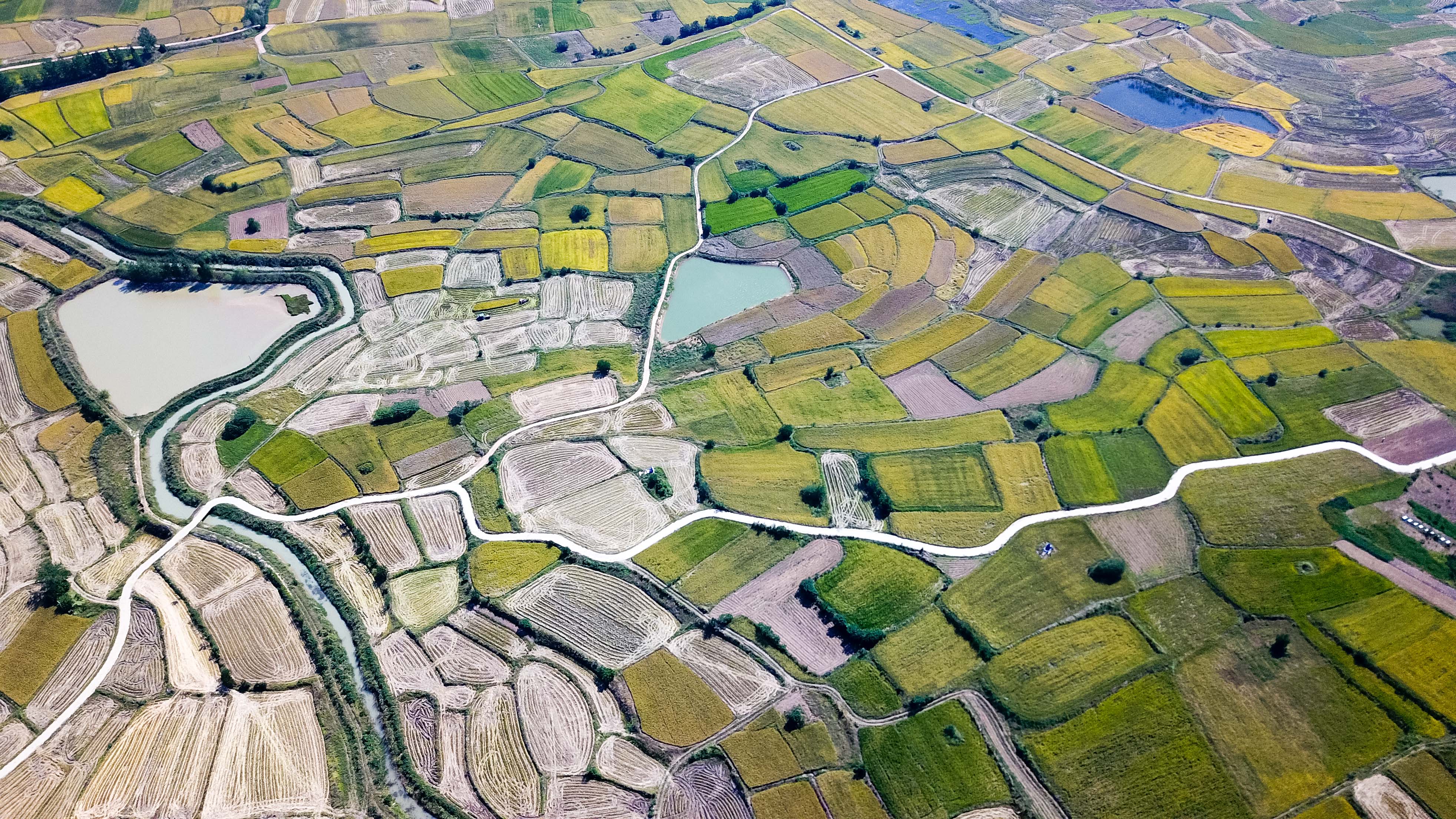 安徽省鳳陽(yáng)縣小崗村的田野景象(2018年9月27日攝,無人機(jī)照片)。新華社記者 張端 攝