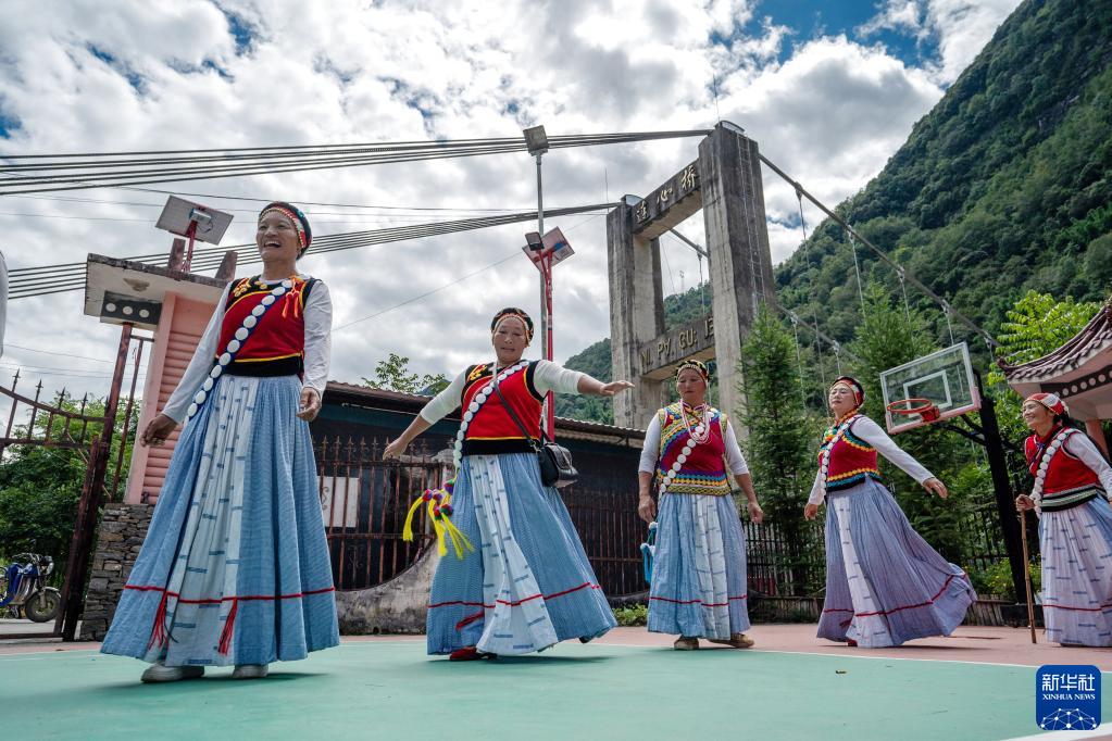 云南省怒江州福貢縣石月亮鄉(xiāng)拉瑪?shù)状宕迕褡园l(fā)組成的“奮進(jìn)合唱團(tuán)”在村委會(huì)排練節(jié)目(2022年9月14日攝)。2020年,怒江州26.96萬(wàn)貧困人口全部脫貧,249個(gè)貧困村全部出列,4個(gè)貧困縣(市)全部摘帽。新華社記者 江文耀 攝