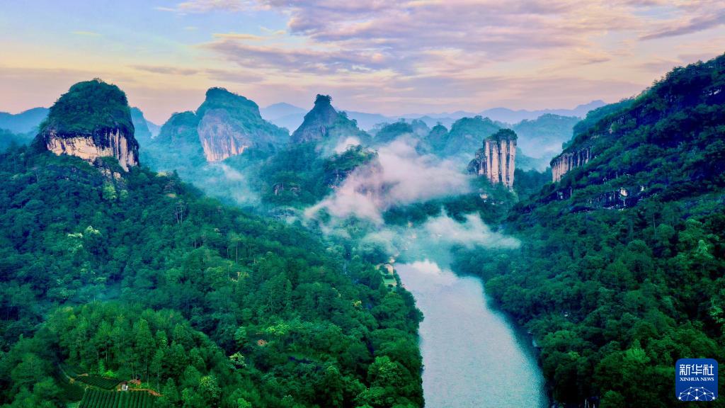 這是福建武夷山九曲溪兩岸的丹霞景觀(2022年6月7日攝,無(wú)人機(jī)照片)。新華社記者 姜克紅 攝