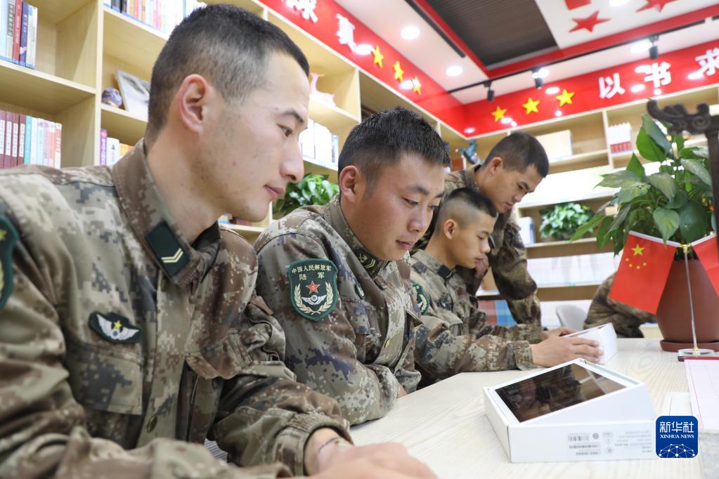 中共中央總書記、國家主席、中央軍委主席習(xí)近平24日下午出席軍隊(duì)領(lǐng)導(dǎo)干部會議時(shí)發(fā)表的重要講話,在解放軍和武警部隊(duì)引起強(qiáng)烈反響。這是新疆軍區(qū)奧爾托蘇邊防連官兵在圖書室認(rèn)真學(xué)習(xí)習(xí)主席重要講話(10月25日攝)。新華社發(fā)(劉南松 攝)