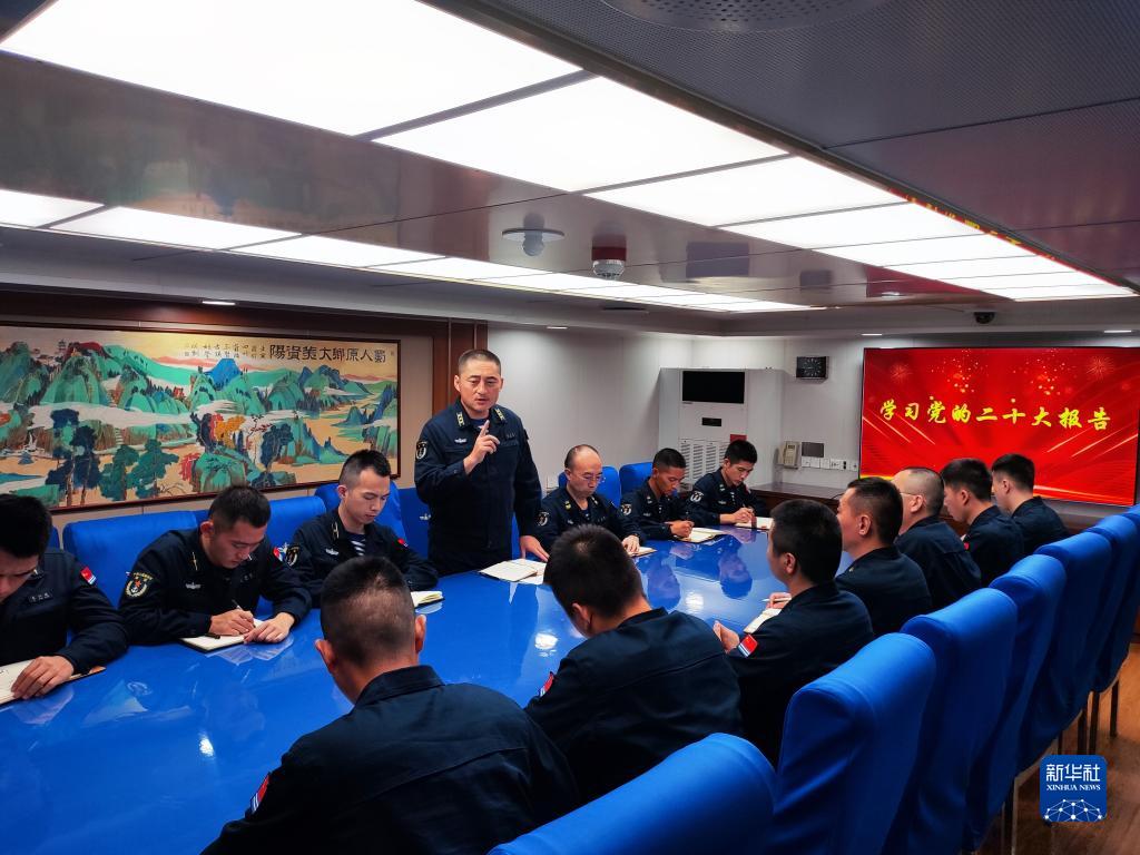 中共中央總書記、國家主席、中央軍委主席習(xí)近平24日下午出席軍隊(duì)領(lǐng)導(dǎo)干部會議時(shí)發(fā)表的重要講話,在解放軍和武警部隊(duì)引起強(qiáng)烈反響。這是東部戰(zhàn)區(qū)海軍護(hù)衛(wèi)艦支隊(duì)迅速組織官兵學(xué)習(xí)習(xí)主席重要講話(10月25日攝)。新華社發(fā)(劉祎瑋 攝)