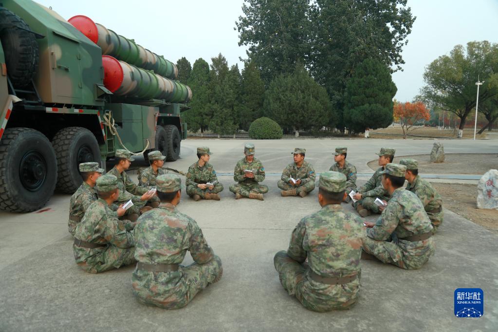 中共中央總書記、國家主席、中央軍委主席習(xí)近平24日下午出席軍隊(duì)領(lǐng)導(dǎo)干部會議時(shí)發(fā)表的重要講話,在解放軍和武警部隊(duì)引起強(qiáng)烈反響。這是中部戰(zhàn)區(qū)空軍“模范地空導(dǎo)彈營”開展“鳴鏑講堂”交流活動,積極組織官兵學(xué)習(xí)習(xí)主席重要講話(10月25日攝)。新華社發(fā)(趙勝之 攝)
