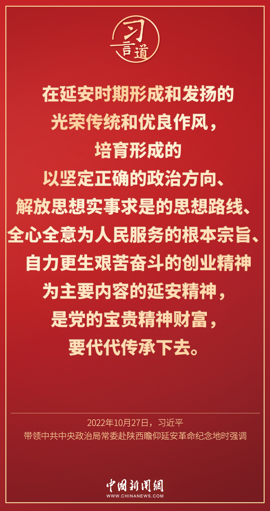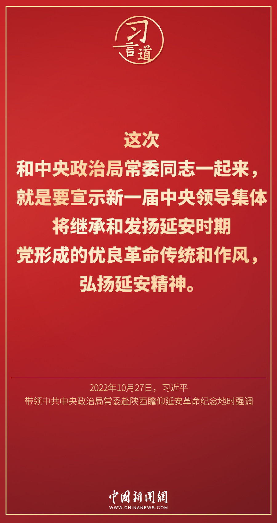 黨的二十大閉幕不到一周,中共中央總書記、國家主席、中央軍委主席習(xí)近平帶領(lǐng)中共中央政治局常委李強(qiáng)、趙樂際、王滬寧、蔡奇、丁薛祥、李希,專程從北京前往陜西延安,瞻仰延安革命紀(jì)念地。此行中,習(xí)近平多次談到延安精神——