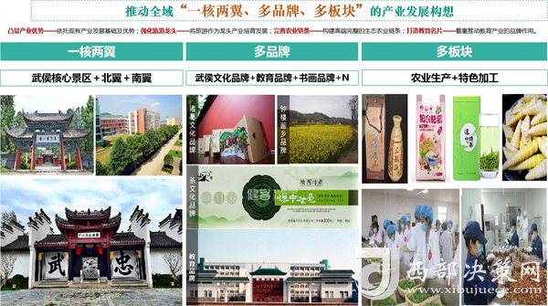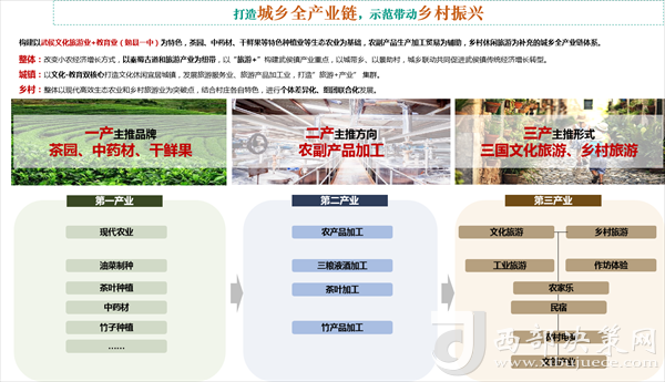 打造城鄉(xiāng)全產(chǎn)業(yè)鏈。構(gòu)建以武侯文化旅游業(yè)+教育業(yè)(勉縣一中)為特色,茶園、中藥材、干鮮果等特色種植業(yè)等生態(tài)農(nóng)業(yè)為基礎(chǔ),農(nóng)副產(chǎn)品生產(chǎn)加工貿(mào)易為輔助,鄉(xiāng)村休閑旅游為互補的城鄉(xiāng)全產(chǎn)業(yè)鏈體系。