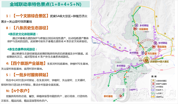 做活三產(chǎn),促進(jìn)三產(chǎn)融合。采用鎮(zhèn)區(qū)—驛道—基地—驛站—農(nóng)戶體系模式,打造1個綜合景區(qū),8條鄉(xiāng)村驛道,4個旅游產(chǎn)業(yè)基地,5個鄉(xiāng)村驛站,N個特色農(nóng)戶。即通過諸葛亮讀書臺、老縣衙恢復(fù)、諸葛文化旅游度假景區(qū)、綜合文化會展中心建設(shè)項目,豐富景區(qū)旅游產(chǎn)品;依托古道,游步道打造8條鄉(xiāng)村驛道;打造武侯鎮(zhèn)朱家河村民宿基地、武侯鎮(zhèn)鐘樓村寫生基地、武侯鎮(zhèn)關(guān)山梁村體旅基地、武侯鎮(zhèn)廟灣茶葉基地;依托長安畫派領(lǐng)軍人物方濟眾名人效應(yīng),打造鐘樓畫鄉(xiāng)品牌;在中心村結(jié)合村莊公共空間分布情況打造5處鄉(xiāng)村驛站,提供休憩、停車、餐飲等旅游配套服務(wù)。(通訊員:張彬)
