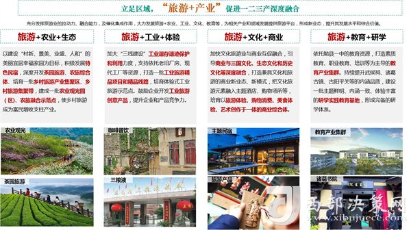 “旅游+”促進(jìn)一二三產(chǎn)深度融合。立足區(qū)域態(tài)勢,“旅游+農(nóng)業(yè)+生態(tài)”“旅游+工業(yè)+體驗”“旅游+文化+商業(yè)”“旅游+教育+研學(xué)”,充分發(fā)揮旅游業(yè)的拉動力、融合力,促進(jìn)“旅游+”深度融合。