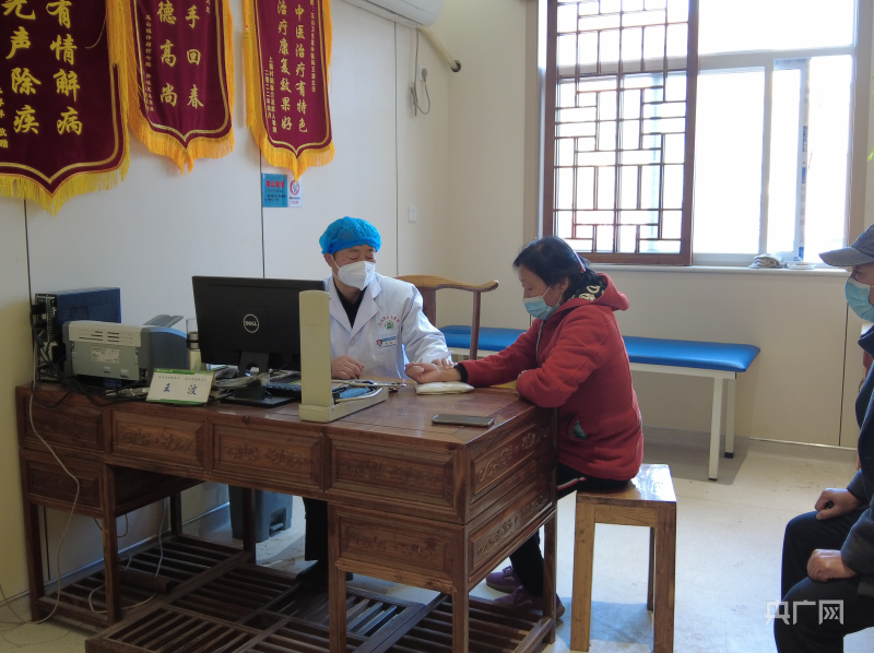 藍(lán)田縣玉山中心衛(wèi)生院內(nèi)醫(yī)生正在為村民問診(央廣網(wǎng)見習(xí)記者 侯凱奇 攝)
