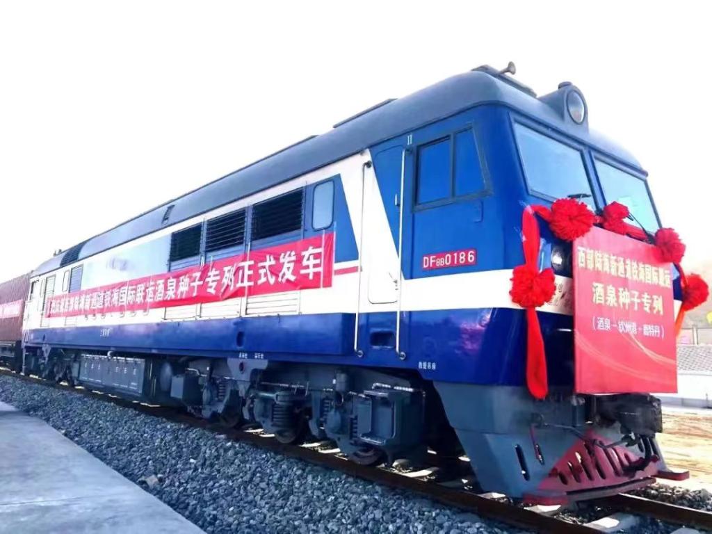 11月17日,西部陸海新通道(酒泉—欽州港—鹿特丹)鐵海國際聯運班列首發(fā)。(受訪者供圖)