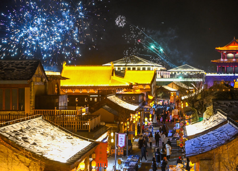 1月14日,游客在金延安文化旅游產(chǎn)業(yè)園內(nèi)游覽。新華社發(fā)
