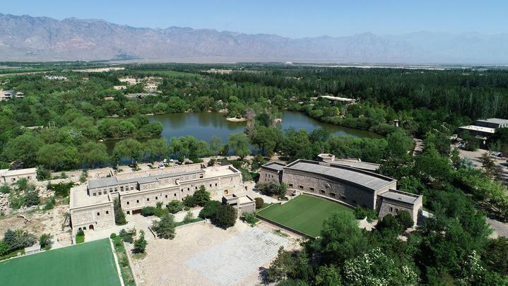 這座酒窖是賀蘭神國(guó)際酒莊創(chuàng)始人陳德啟的得意之作。2007年,福建商人陳德啟到寧夏考察,敏銳地在賀蘭山東麓的戈壁灘上嗅到商機(jī)。“這里的風(fēng)土太適合種釀酒葡萄了。那時(shí)我就斷定,這里一定能釀出讓世界矚目的葡萄酒。”陳德啟說。隨后,他在戈壁灘上住工棚、吃泡面,指揮建設(shè)了10萬畝葡萄種植基地和一座酒莊,這番執(zhí)著最終讓他的葡萄酒收獲市場(chǎng)認(rèn)可。