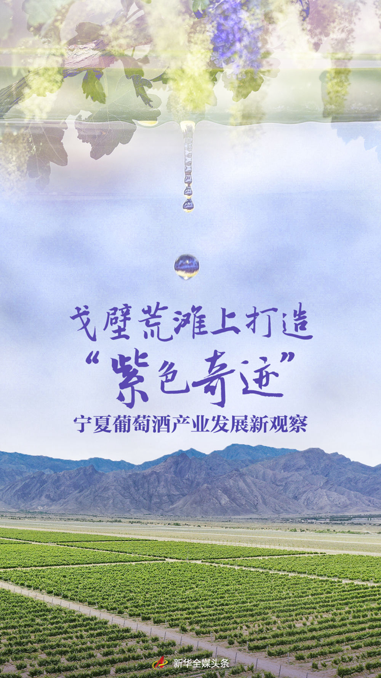 賀蘭山峰巒重疊、崖谷險(xiǎn)峻,向東俯瞰著寧夏平原。山腳與平原之間,原是一片狹長(zhǎng)的亙古戈壁。寧夏葡萄酒產(chǎn)業(yè)的興起和快速發(fā)展,讓這片戈壁荒灘成為盛產(chǎn)優(yōu)質(zhì)釀酒葡萄的寶地。如今,每年有1.38億瓶葡萄酒從這里走向全世界,不但產(chǎn)生可觀的“紫色經(jīng)濟(jì)”效益,更托起賀蘭山東麓的“綠色希望”和助農(nóng)增收的“富民夢(mèng)想”。