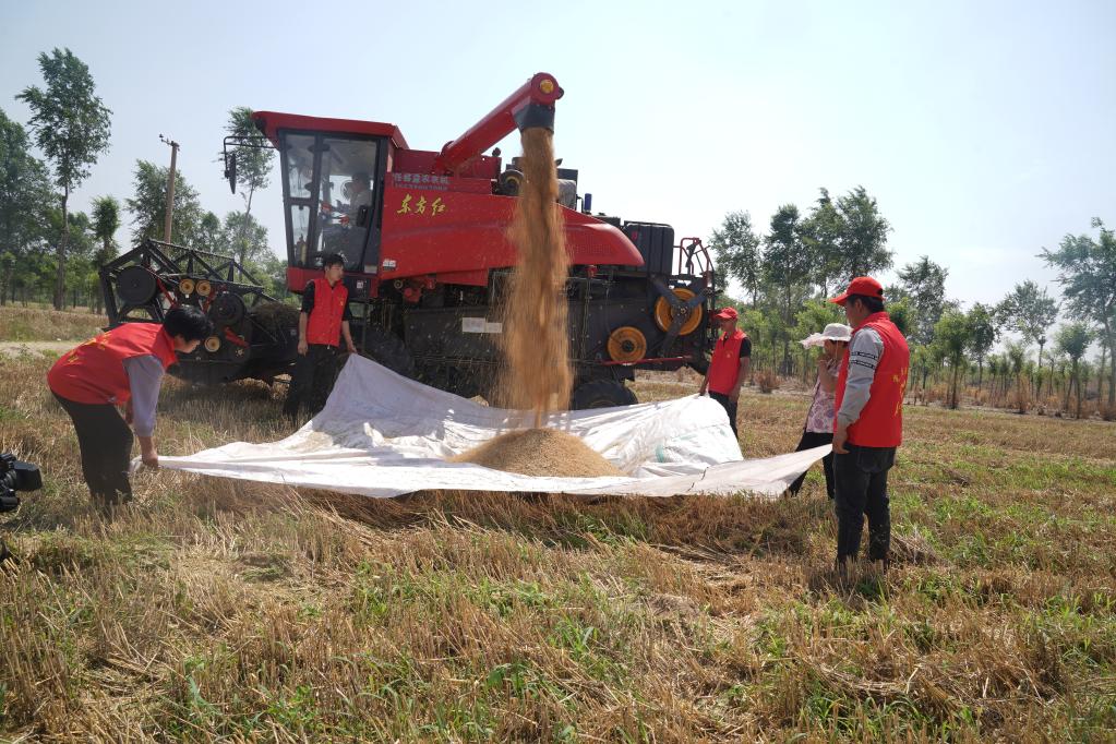 在河北邢臺(tái)經(jīng)濟(jì)開(kāi)發(fā)區(qū)的一處麥田,志愿者正在幫助農(nóng)民收小麥。新華社記者 鄒尚伯 攝