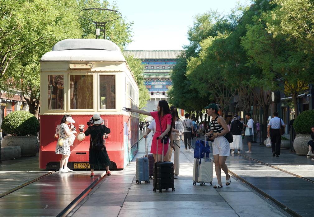 7月9日,人們?cè)谇伴T大街參觀游覽。新華社記者 任超 攝