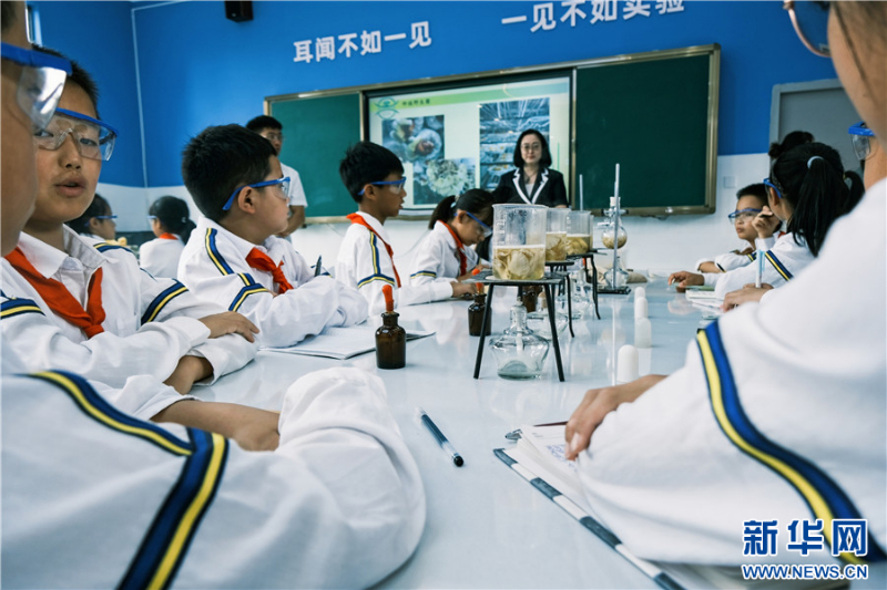 教室里,孩子們提取野生菌精油、觀察野生菌菌包