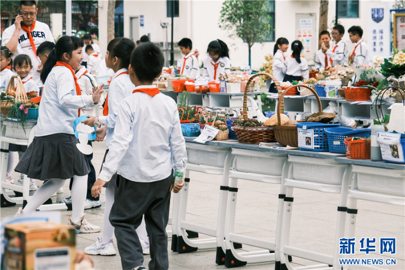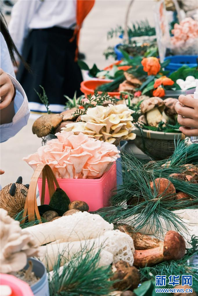 操場(chǎng)上,孩子們擺起了野生菌集市