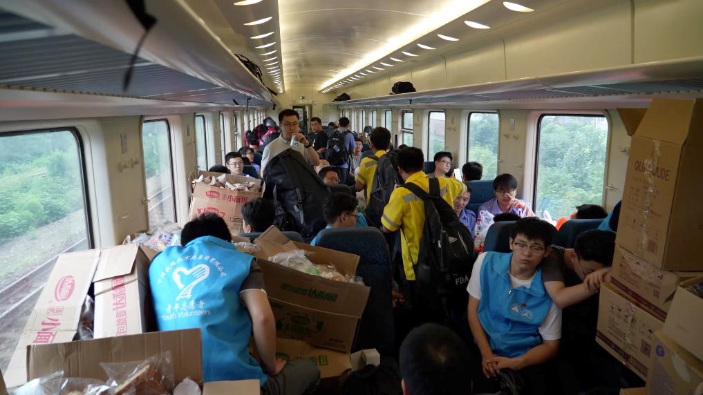 隨后,突擊隊成員徒步攜帶生活物資向安家莊站、落坡嶺站行進。身負30至40斤背包,沿著受損的鐵路線,徒步11余公里,穿越7個隧道,為安家莊站、落坡嶺站滯留旅客及時送去物資。
