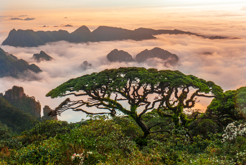 廣西大瑤山國家級(jí)自然保護(hù)區(qū)圣堂山頂“八桂迎客松”鐵杉,600年。李德康攝