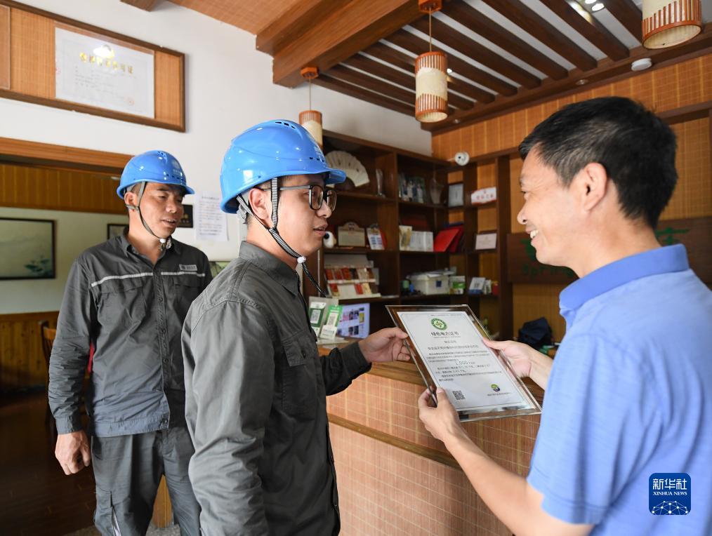 8月11日,電力工作人員給余村的一家酒店頒發(fā)綠證。