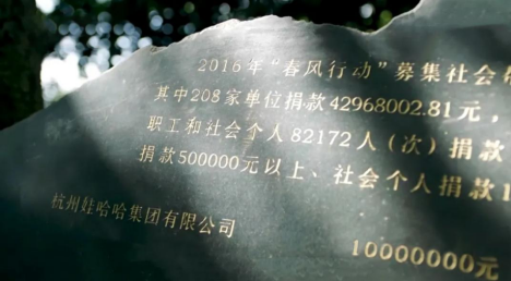 自2011年起,娃哈哈聯(lián)合杭州市總工會“春風行動”辦公室,開啟了“娃哈哈·春風助學”專項援助項目,主要資助建檔困難家庭子女就讀國內(nèi)全日制普通高校、成人高校、高等職業(yè)學校。自設(shè)立以來,累計幫助5萬多名困難學生走進大學校園。