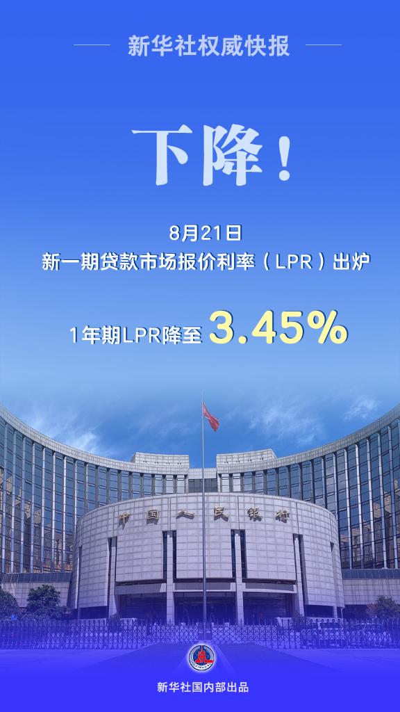1年期LPR降至3.45%,較上一期下降10個(gè)基點(diǎn)