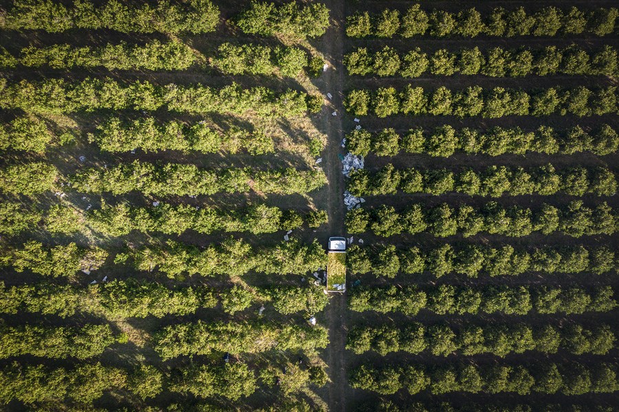 這是2023年5月24日在南非西北省拍攝的一處柑橘農(nóng)場(無人機(jī)照片)。(新華社發(fā),希拉茲·穆罕默德攝)
