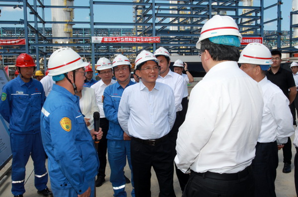 29日上午,孫金龍一行前往山東裕龍石化產(chǎn)業(yè)園,調(diào)研裕龍島煉化一體化項(xiàng)目。該項(xiàng)目位于煙臺(tái)市所轄龍口市,是山東省新舊動(dòng)能轉(zhuǎn)換、現(xiàn)有地?zé)挳a(chǎn)能供給側(cè)改革升級的重點(diǎn)項(xiàng)目,規(guī)劃產(chǎn)能4000萬噸/年。孫金龍觀看了項(xiàng)目建設(shè)紀(jì)實(shí)片并參觀了裕龍石化展廳,聽取了項(xiàng)目有關(guān)介紹,隨后前往3號(hào)島和2號(hào)島實(shí)地查看一期建設(shè)情況,現(xiàn)場考察項(xiàng)目實(shí)施、設(shè)備工藝、環(huán)境安全等情況,仔細(xì)詢問污染物排放情況和廢水、廢氣及危險(xiǎn)廢物處置措施。他強(qiáng)調(diào),推動(dòng)發(fā)展方式綠色低碳轉(zhuǎn)型,產(chǎn)業(yè)綠色轉(zhuǎn)型升級是重點(diǎn)和關(guān)鍵。要健全生態(tài)環(huán)境法規(guī)政策標(biāo)準(zhǔn),強(qiáng)化生態(tài)環(huán)境準(zhǔn)入管理,加快促進(jìn)產(chǎn)業(yè)結(jié)構(gòu)調(diào)整優(yōu)化,通過高水平保護(hù)不斷塑造發(fā)展的新動(dòng)能、新優(yōu)勢。要指導(dǎo)支持企業(yè)開展綠色低碳技術(shù)改造,嚴(yán)格落實(shí)環(huán)評審批要求和相關(guān)環(huán)保標(biāo)準(zhǔn)措施,確保環(huán)保設(shè)施建設(shè)到位、規(guī)范運(yùn)行和達(dá)標(biāo)排放,切實(shí)做好環(huán)境風(fēng)險(xiǎn)防范處置工作。