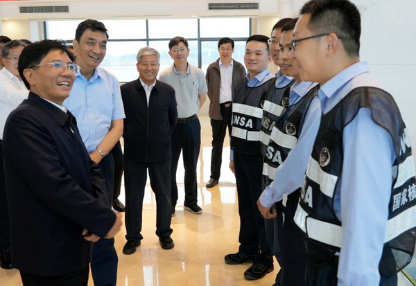 隨后,孫金龍深入到核電機(jī)組項(xiàng)目一線調(diào)研,實(shí)地查看3、4號(hào)機(jī)組工程指揮中心和施工現(xiàn)場,了解核電項(xiàng)目智慧工地集成平臺(tái)運(yùn)行情況,到2號(hào)機(jī)組主控室,仔細(xì)詢問指揮系統(tǒng)監(jiān)測報(bào)警處置情況,詳細(xì)了解機(jī)組安全運(yùn)行和監(jiān)管情況。他強(qiáng)調(diào),核安全是核電的生命線,是國家安全的重要組成部分。要深入貫徹總體國家安全觀和理性、協(xié)調(diào)、并進(jìn)的核安全觀,更好統(tǒng)籌發(fā)展和安全,始終堅(jiān)持安全第一、質(zhì)量第一的原則,嚴(yán)格核與輻射安全監(jiān)管,促進(jìn)核事業(yè)安全有序發(fā)展。要培育和樹牢核安全文化理念,進(jìn)一步強(qiáng)化底線思維和問題導(dǎo)向,嚴(yán)格落實(shí)核安全責(zé)任,加強(qiáng)安全數(shù)據(jù)分析和經(jīng)驗(yàn)反饋,切實(shí)做好安全防范和預(yù)警處置,全面提高核安全監(jiān)管能力和水平,確保核與輻射絕對安全。孫金龍還看望慰問了生態(tài)環(huán)境部華東核與輻射安全監(jiān)督站駐廠監(jiān)督員,與大家親切交談,勉勵(lì)大家不斷提高政治站位,時(shí)刻繃緊安全這根弦,發(fā)揚(yáng)“嚴(yán)、慎、細(xì)、實(shí)”的優(yōu)良作風(fēng),不斷提升工作本領(lǐng),認(rèn)真履行好核安全監(jiān)管職責(zé)。