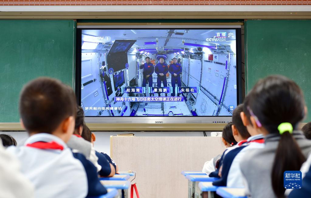 9月21日,在安徽省合肥市安慶路第三小學大楊分校,學生收看“天宮課堂”第四課。新華社發(fā)(葛傳紅攝)