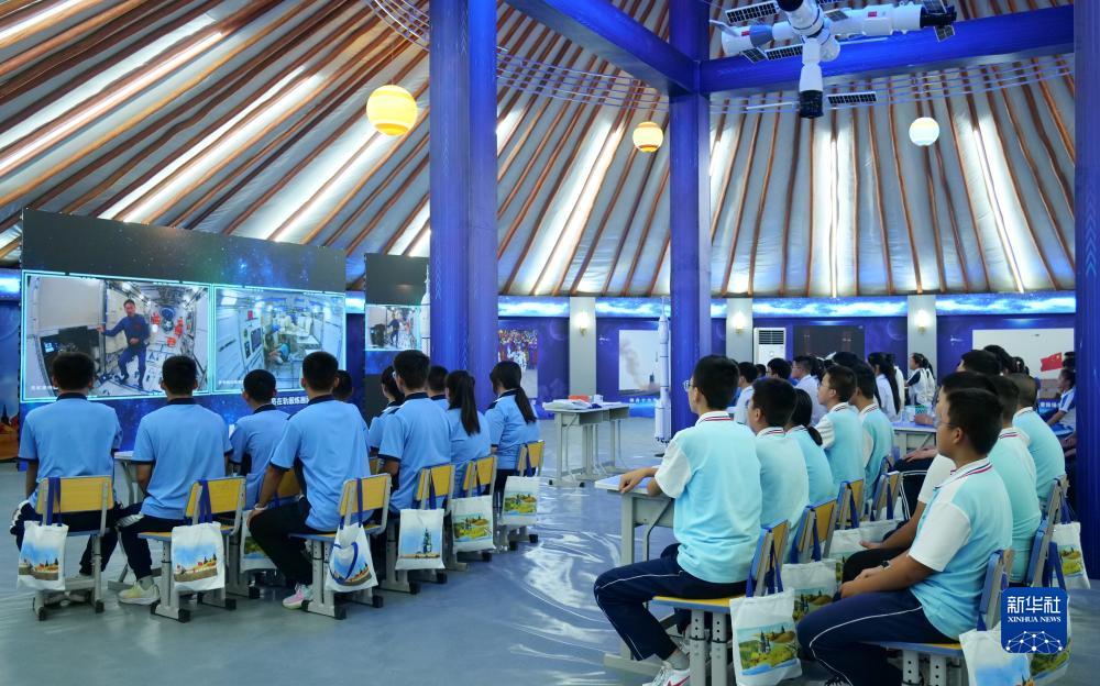 9月21日,在內蒙古阿拉善盟額濟納旗,學生收看“天宮課堂”。新華社發(fā)(敖琪 攝)
