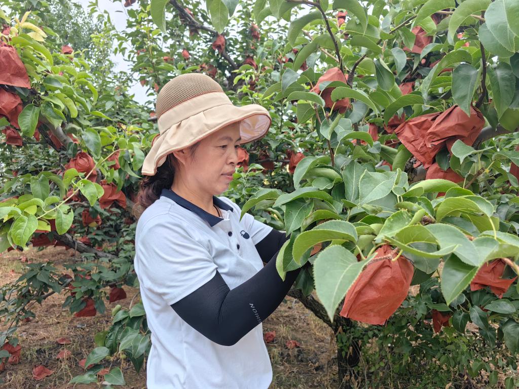 山東聊城冠縣蘭沃鄉(xiāng)韓路村的萬(wàn)畝梨園內(nèi),村民正在梨園勞作。新華社記者張力元 攝