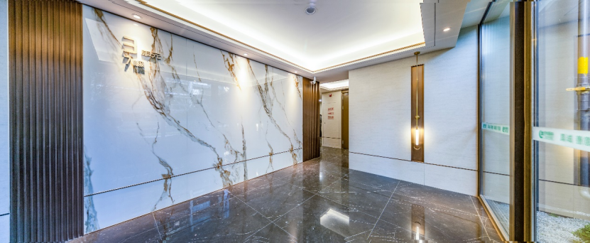 地下光廳的打造,以沖孔鋁板頂面,搭配以900x1800大規(guī)格墻面瓷磚+木紋冰火板,消防功能之上品質(zhì)感滿格。種種細(xì)節(jié)升級,只為給業(yè)主帶來富有質(zhì)感的生活居住體驗(yàn)。