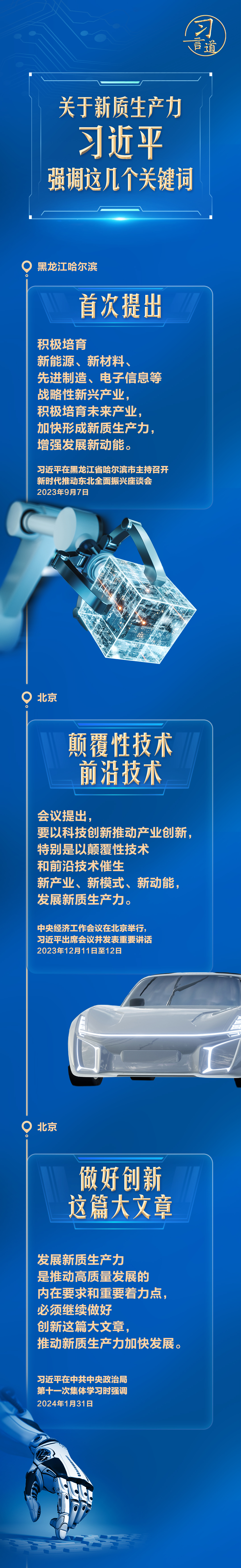 從去年9月在黑龍江考察時首次提出,到今年1月在中央政治局第十一次集體學習時系統(tǒng)闡述,再到此次兩會期間強調(diào),習近平多次談到新質(zhì)生產(chǎn)力。讓我們沿著總書記的足跡,一起研讀。