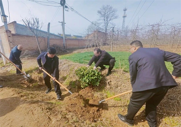 西部決策網(wǎng)訊(記者劉玉 韓宗憲 通訊員 張亞強(qiáng) 李凌月)惠風(fēng)和暢春意濃,植樹添綠正當(dāng)時。3月12日上午,寶雞市鳳翔區(qū)范家寨鎮(zhèn)組織70余名機(jī)關(guān)干部到湫池廟村開展“擁抱春天 播種綠色”植樹活動,共同迎接全國第46個植樹節(jié)。