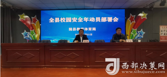 西部決策網(wǎng)訊 3月21日下午,寶雞市隴縣教育體育局召開全縣校園安全年動員部署會,深入學(xué)習(xí)領(lǐng)會習(xí)近平總書記關(guān)于安全生產(chǎn)的重要論述精神,認真落實中省市縣安全會議精神,總結(jié)工作,分析形勢,全面部署安排全縣教體系統(tǒng)2024年“校園安全年”活動。