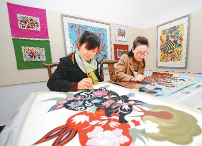 近年來,陜西延安安塞區(qū)依托全國民間藝術(shù)之鄉(xiāng)的優(yōu)勢,圍繞腰鼓、民歌、剪紙、繪畫、曲藝五張文化名片,推進(jìn)文化+農(nóng)業(yè)+旅游的融合發(fā)展戰(zhàn)略,助力鄉(xiāng)村旅游發(fā)展。圖為10月20日,安塞區(qū)高橋鎮(zhèn)魏塔民俗文化村的藝人在繪制農(nóng)民畫。 新華社記者劉瀟攝……
